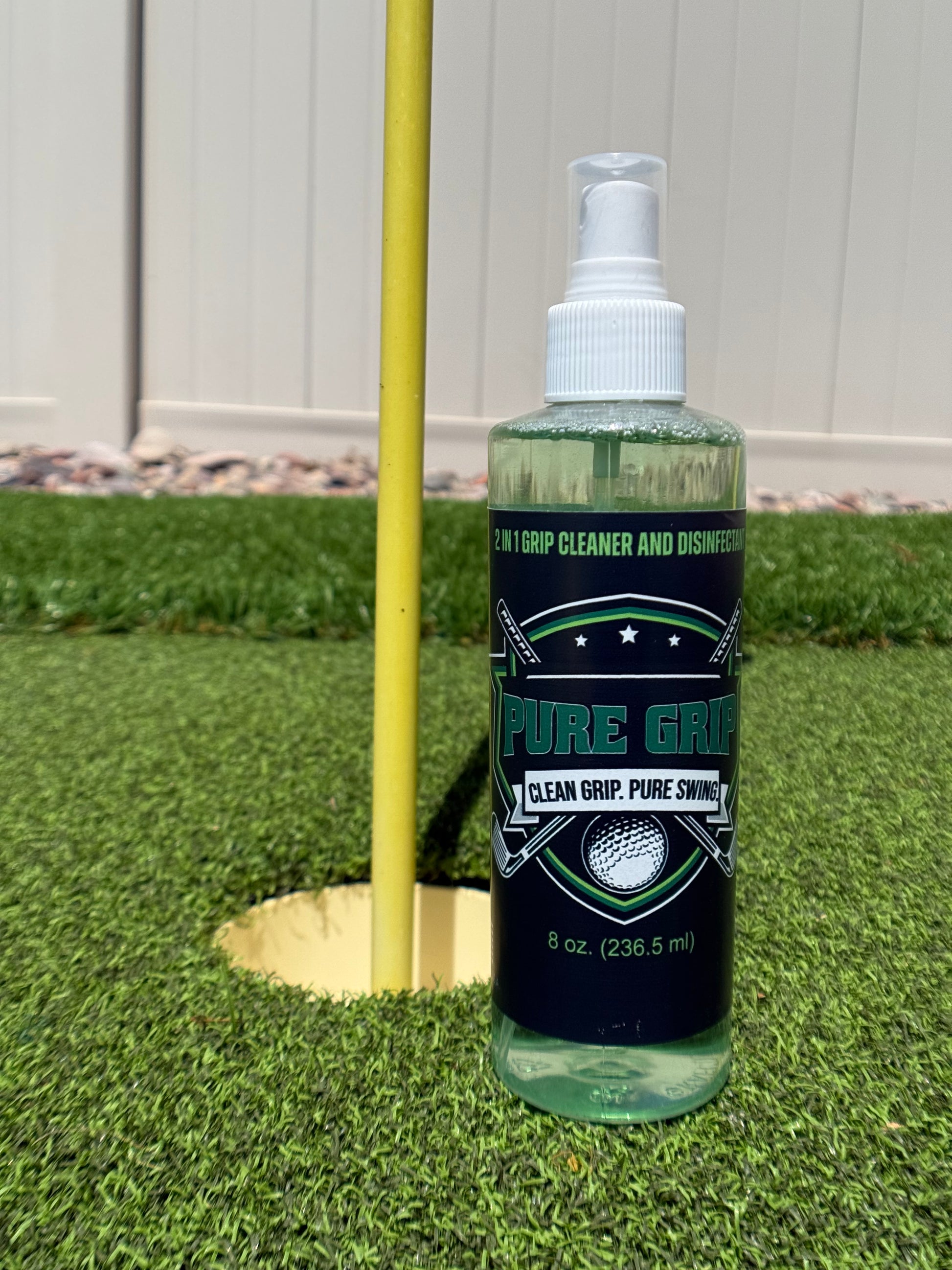 The ultimate golf grip and golf club cleaner. Pure Grip will clean and disinfect your golf grips with no rinse required! This means you can completely clean your clubs within minutes, instead of taking up time on the course. With a few sprays of Pure Grip you can have your golf grip and club fresh and clean. We have added a disinfectant component to our unique product, which leaves your club smelling fresh and really clean.